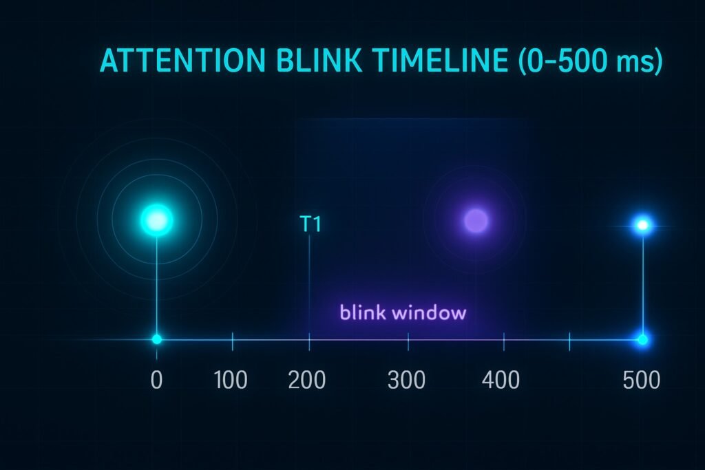 Neural Explanation: The brain operates on approximately 10 Hz attention cycles (alpha waves). Each cycle determines what gets conscious access. When T2 falls between these cycles—during the "blink" period—it gets suppressed even though the eyes physically saw it.